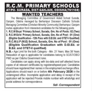 R.C.M. Primary schoolsOdisha private Jobs 2026 | |