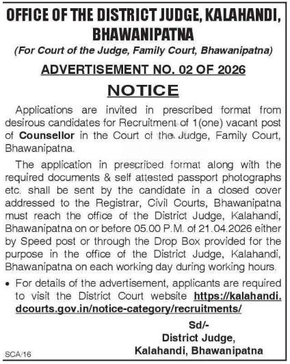 Family Court Kalahandi Recruitment 2026Odisha Gov Jobs 2026 | |