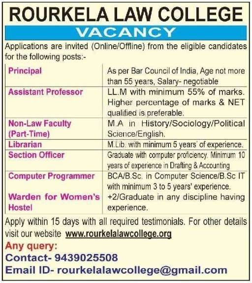 Rourkela Law College Recruitment 2026Odisha Private Jobs 2026 | |